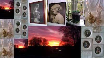 Tavlan ser inte riktigt ut som på bilden, det är det stora plommonträdet som speglar sej i tavlans glas, men orginellt foto blev det :)