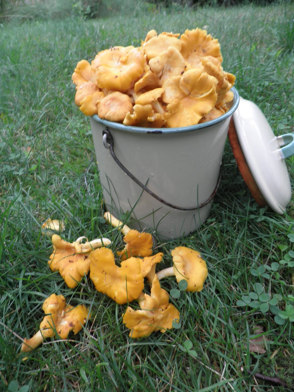 Hundarna och jag har varit i skogen och letat trattkantarell och förvånad som jag blev så mötte vi Herr Kantarell med sin familj...:) Har aldrig sett på maken, 25.e oktober..... Ojoj... Så ikväll blir det varma svampsmörgåsar... mmmmm..
